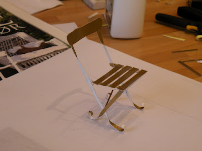 Così mi sono armata di cartoncino, forbici e tanta, tanta pazienza e dopo varie prove ecco che la sedia inizia a prendere forma........